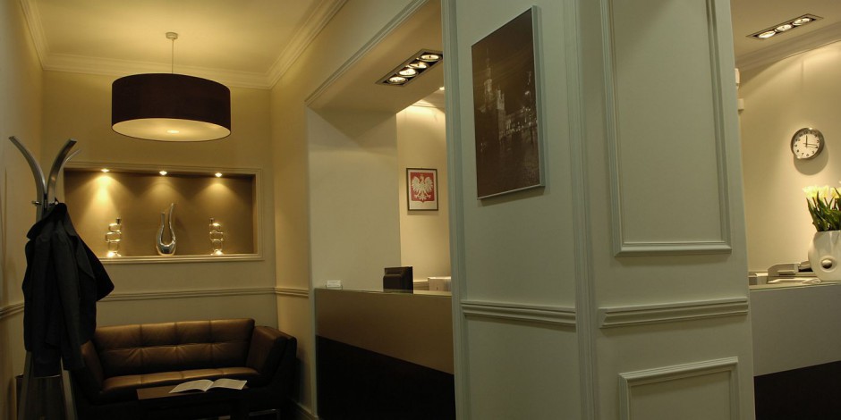 Kancelaria notarialna mieści się na parterze zabytkowej kamienicy w centrum miasta. Inwestor chciał, żeby jej wnętrze wpisywało się w klimat budynku. Dążyliśmy do stworzenia klasycznego w wyglądzie wnętrza, ale posiadającego jednocześnie oddech i przestrzeń. Tradycyjnego wyrazu nadają przestrzeni m.in. sztukaterie ścienne, do których nawiązują specjalnie zaprojektowane szafy wnękowe, meble oraz lampy. Tonację kolorystyczną utrzymaliśmy w szlachetnych, stonowanych odcieniach ziemi, dających wrażenie ciepła i przytulności.