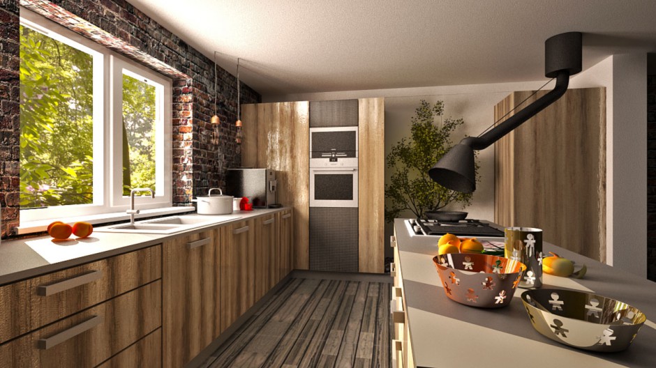 Wizualizacja kuchni w drewnie